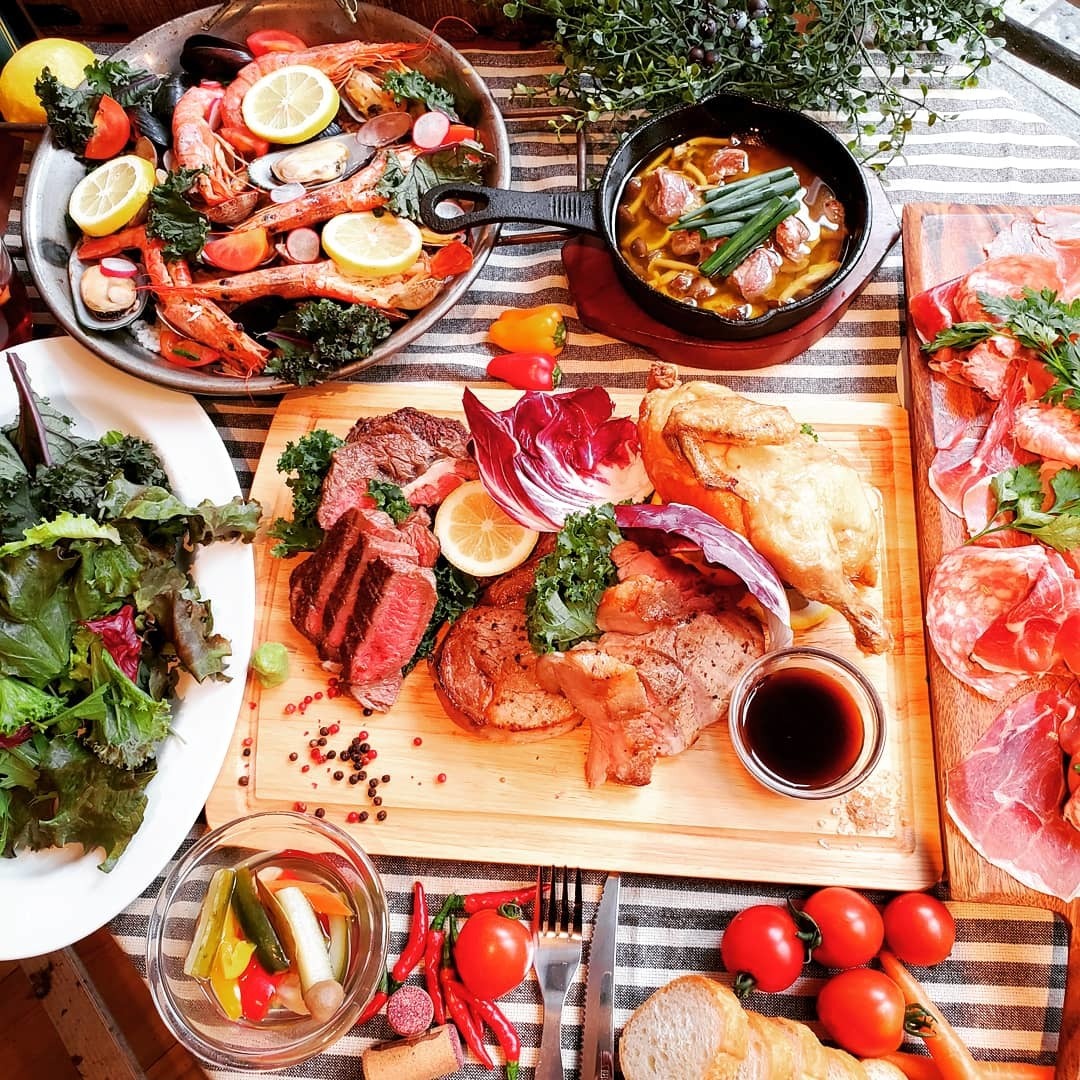 前菜からメインと当店の人気メニューが楽しめる「MEAT STAND」のおすすめコースです。メインは「1ポンド牛ロースステーキ」に「豚バラ肉BBQソース」と2種の肉料理をご用意。おいしいワインを片手に思う存分ご堪能ください。